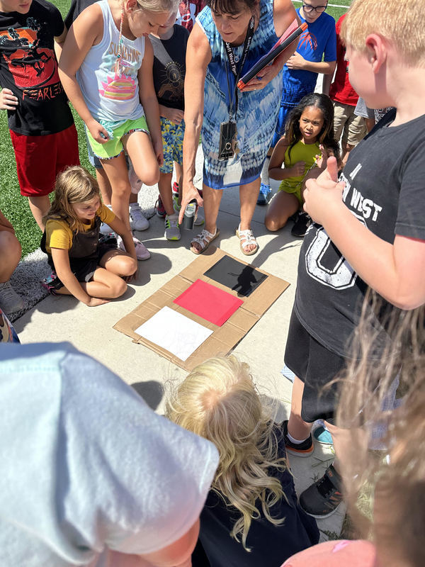 We used the excessive heat this week to study how different colors and materials absorb heat differently. Mrs. Hisey brought her infrared thermometer and 3rd grade conducted a fun experiment.